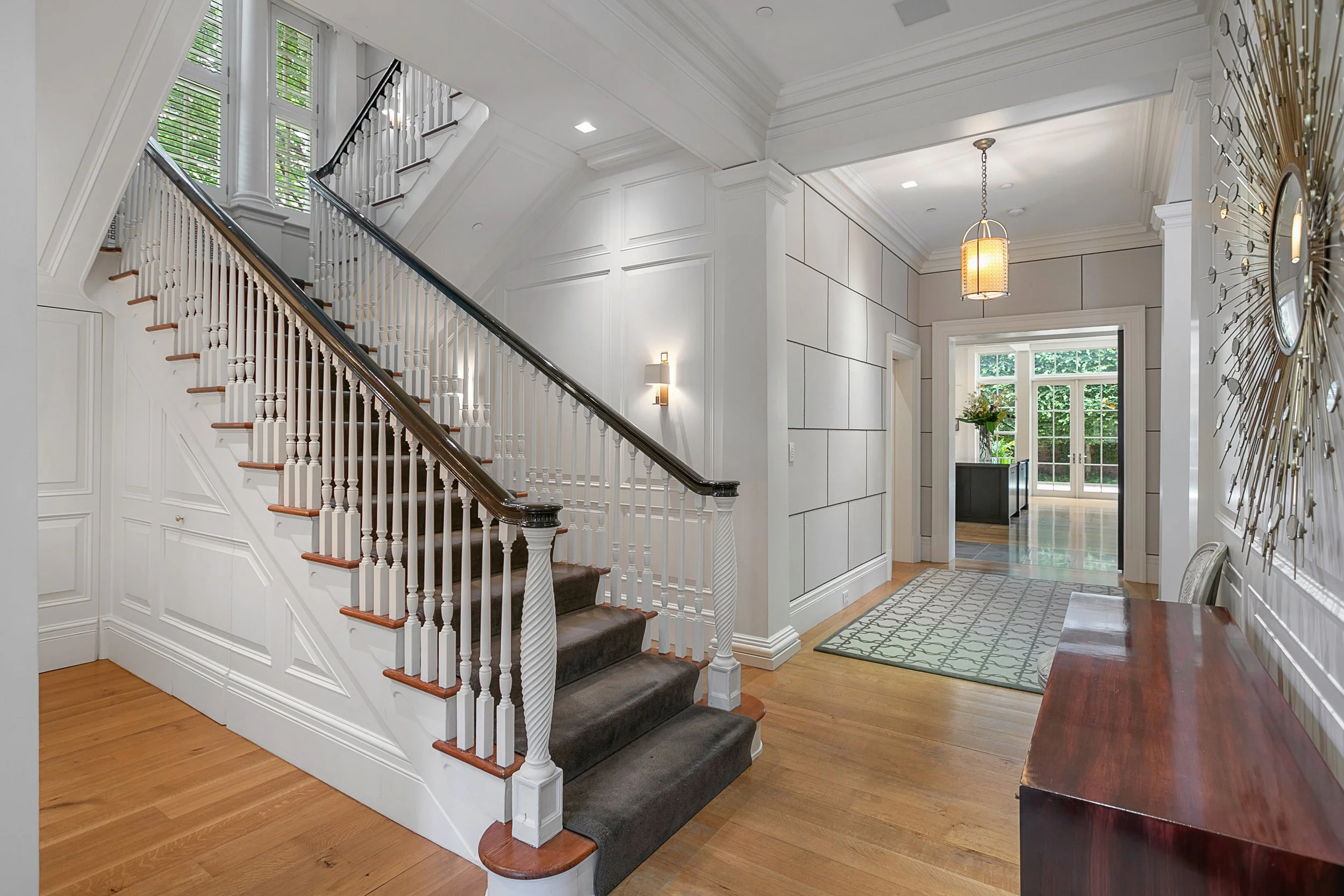Ideally located in the heart of Georgetown’s prestigious East Village, this handsome 8,000 square foot detached residence exudes grandeur. The Colonial Revival-style home was built in 1893 by Thomas Hyde, a prominent Washington DC businessman, who worked directly with the architecture firm of Snowden Ashford and Howard Sill. The house remained in the Hyde family until the early 1960’s, when the new owner made significant changes to both the interior and exterior of the existing structure. The residence now has a commanding street presence on the corner of 27th and Q Streets, set back from the street to capture incredible light from all directions. The classic brick facade offers impressive curb appeal, and the interior boasts a seamless balance of sophisticated entertaining rooms and warm family living spaces. In 2009, award-winning architects Cunningham|Quill and interior designer Thom Pheasant worked together in a seamless custom custom collaboration to completely transform the home using the highest quality design, fixtures, and finishes. No detail was overlooked in the impressive renovation of this immaculate residence. The house has five qeothermal systems with seven zones, plus two radiant floor heating system zones.